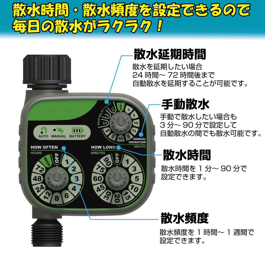 ● 散水延期機能 : 24時間~72時間