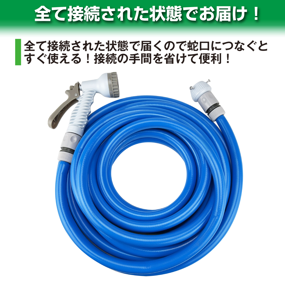 水やり 散水 耐圧糸入 ホース ノズル付き 家庭用 ホースセット 1巻φ15/20mm 10m 20m 30m 7種 散水ノズル 耐圧 耐寒 防藻 園芸