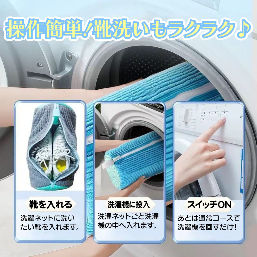 靴を入れて洗濯機に入れるだけ!手洗い不要で簡単・時短。