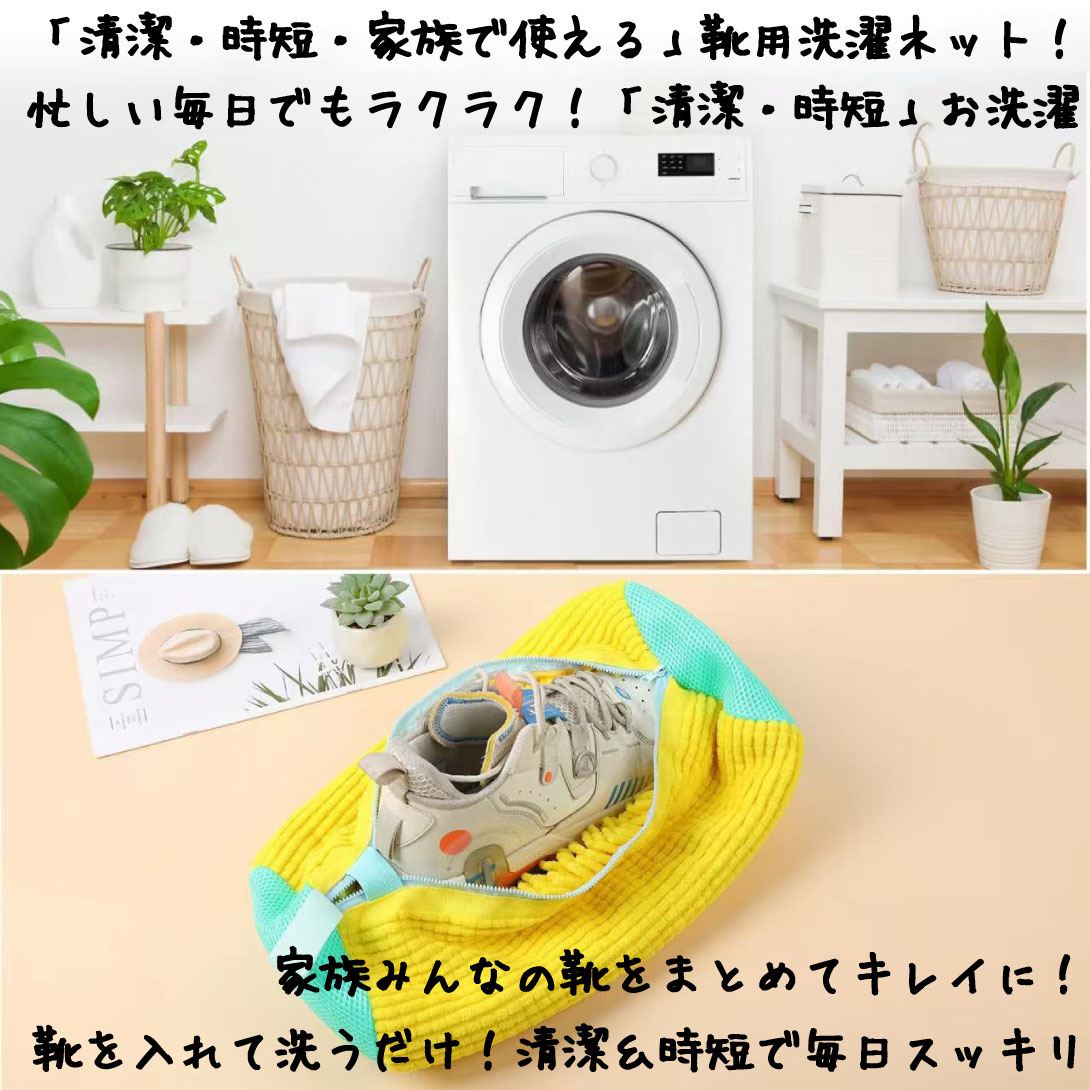 靴用洗濯ネット 2枚組 シューズ 洗濯袋 ランドリーネット 丸洗い 型崩れ防止 縦型・ドラム式OK 繰り返し使える 耐久性抜群 上履き スニーカー 子ども靴 大人靴 省スペース収納 清潔 時短