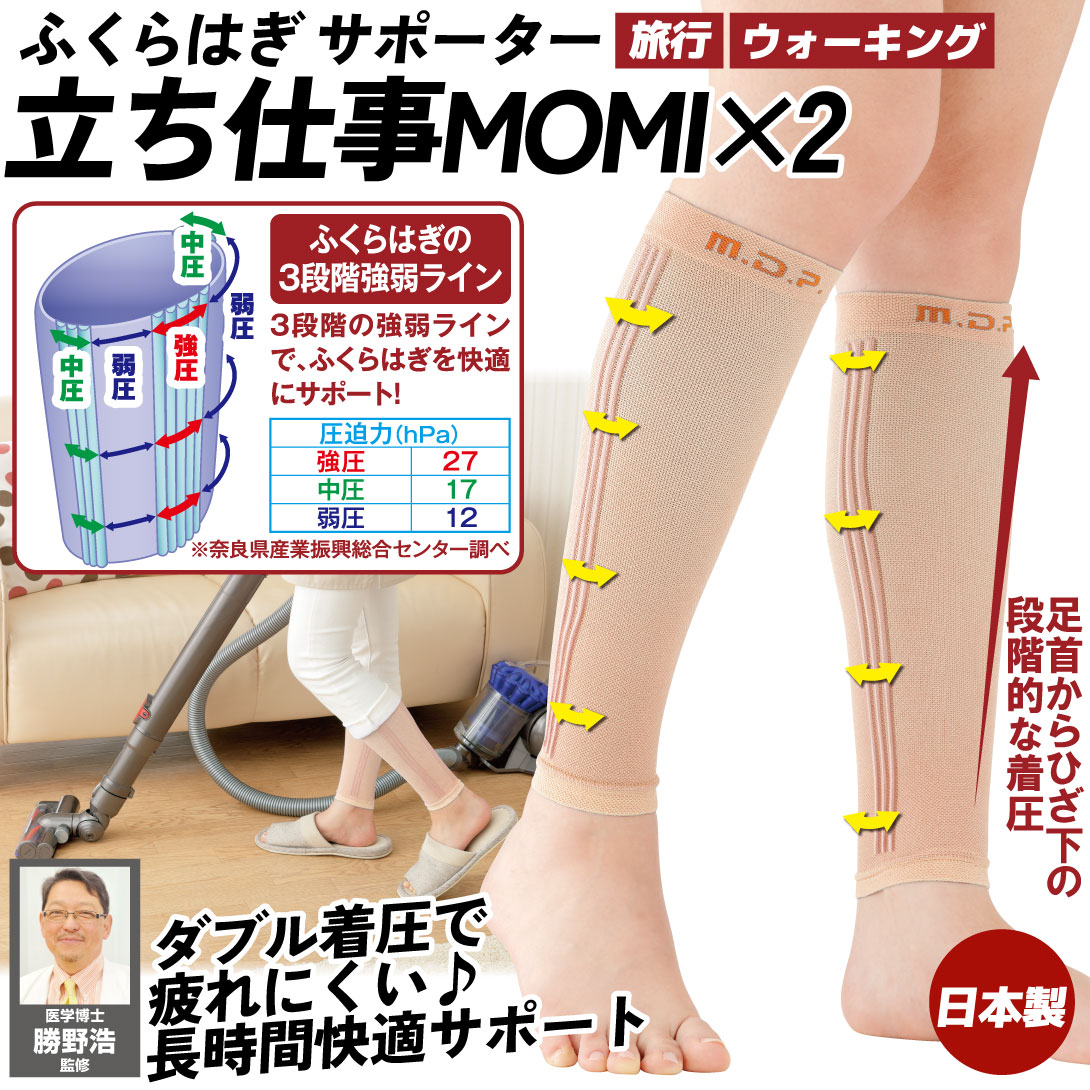 ふくらはぎ サポーター 立ち仕事MOMIMOMI 2枚組 ベージュ 健康 足サポーター 伸縮 薄手 日本製 男女兼用 左右兼用 蒸れにくい