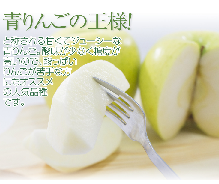 ●商品情報:酸味を感じないほどの強い甘味と芳醇な香りで、根強い人気を誇る青りんご。