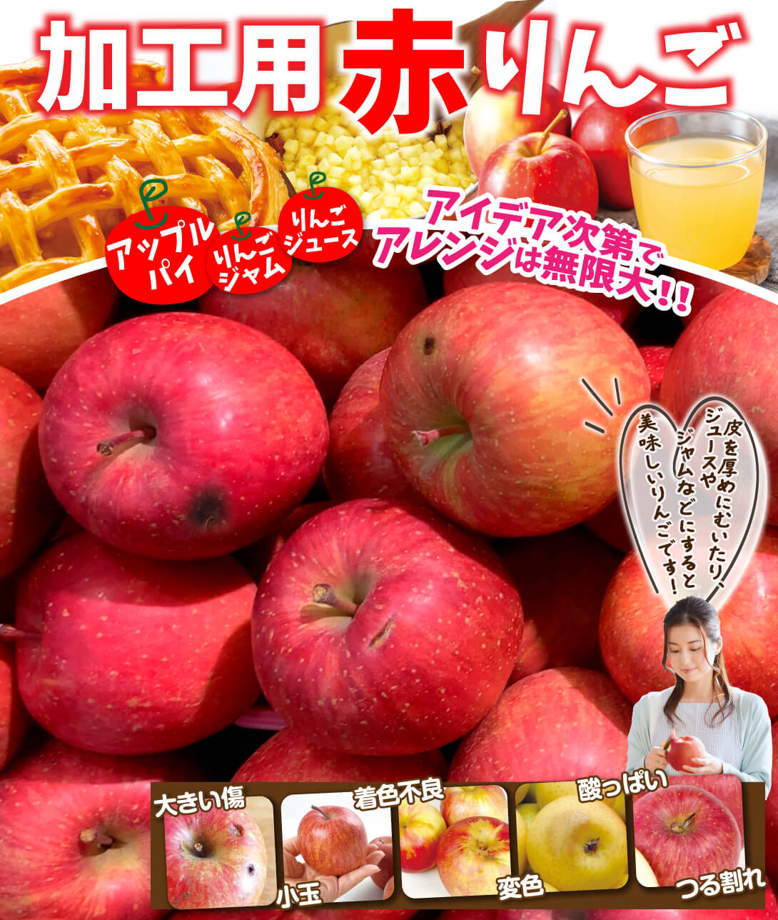 ●商品情報:数量限定!本場・青森の契約選果場より、キズなど見た目が悪いため生食用として販売できない、規格外・加工向けの赤りんごを、おまかせで1品種ご用意!
