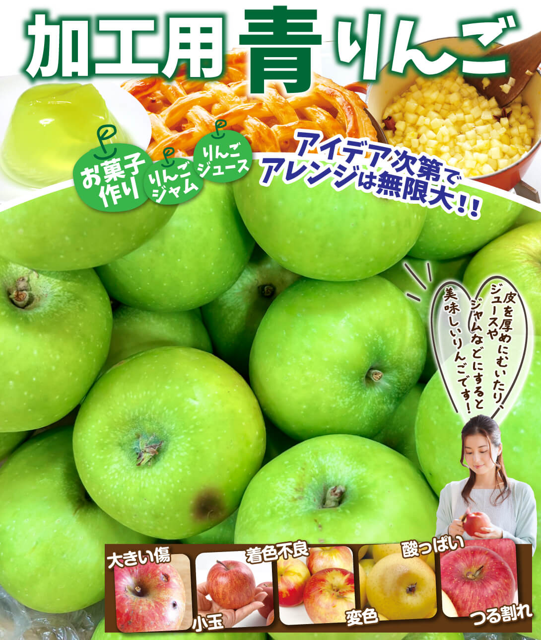 ●商品情報:数量限定!本場・青森の契約選果場より、キズなど見た目が悪いため生食用として販売できない、規格外・加工向けの青りんごを、おまかせで1品種ご用意!