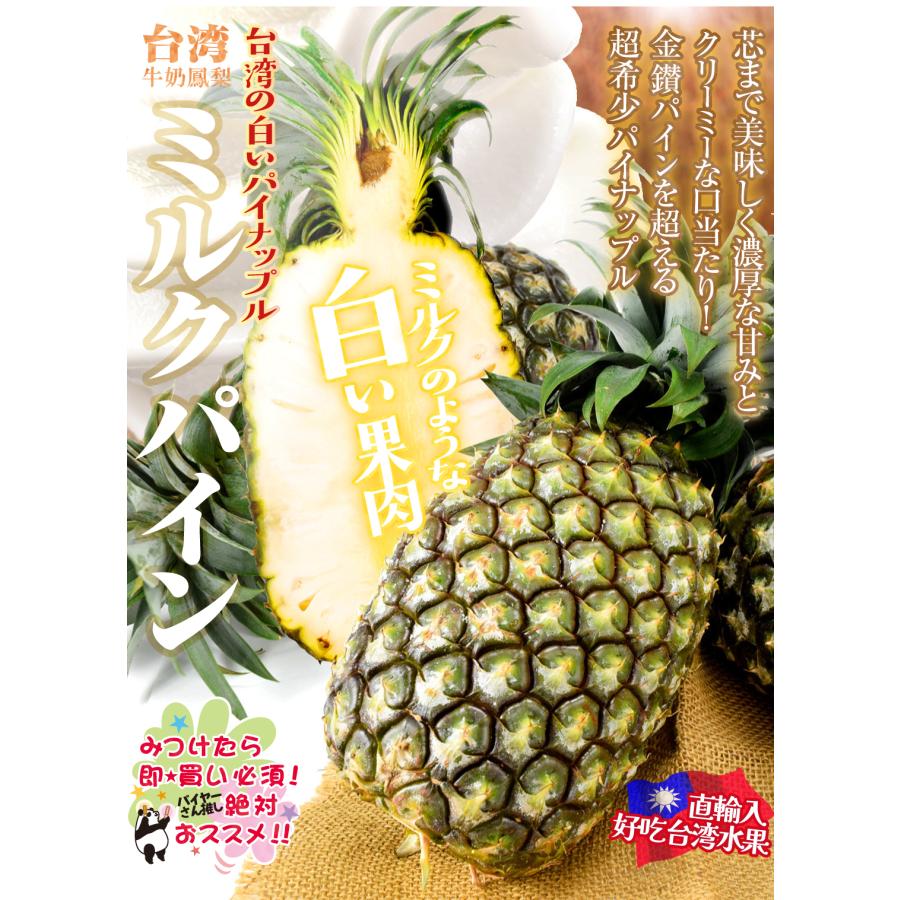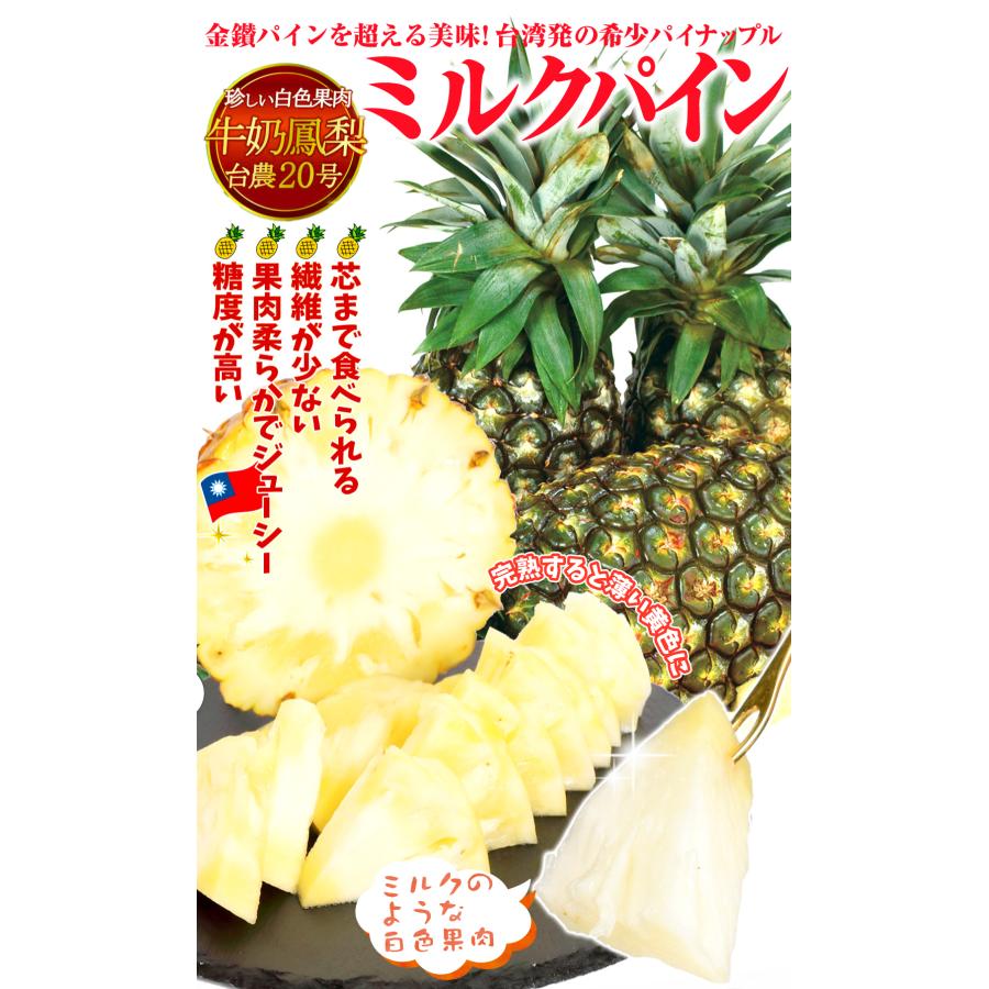 ●商品情報:クリーミーな白い果肉が特徴で、通称・ミルクパインと呼ばれる生産量の少ない希少品種。繊維が少なく芯まで食べられ、甘み極上!