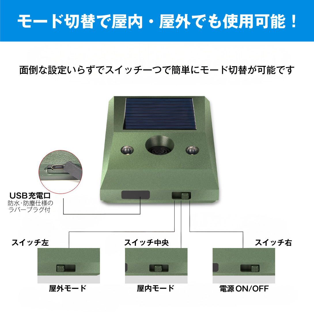 動物よけ 猫よけ ソーラー式ガードくん 超音波 獣害対策 猫除け 動物除け USB充電可 動物撃退器 鳥 アライグマ ネズミ 鳥獣害 庭 畑 省エネ 設置簡単