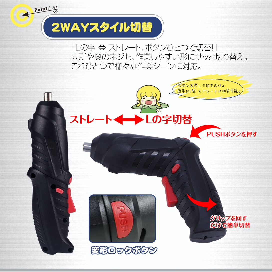 ✔ 2WAYスタイルで高所・奥のネジもOK