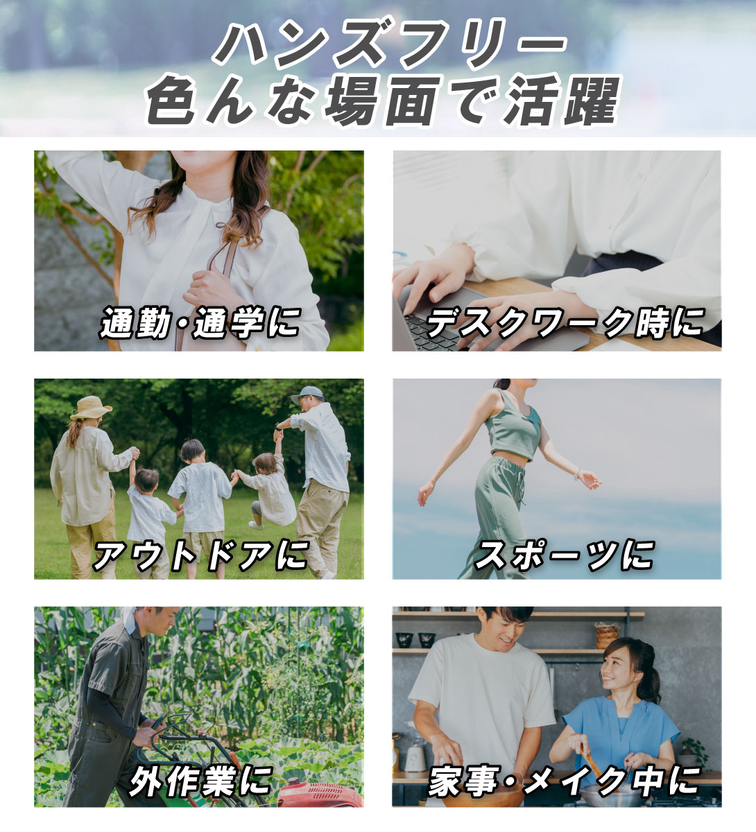 首元から顔周りまでしっかり風を届け、暑い日でも快適に過ごせます。