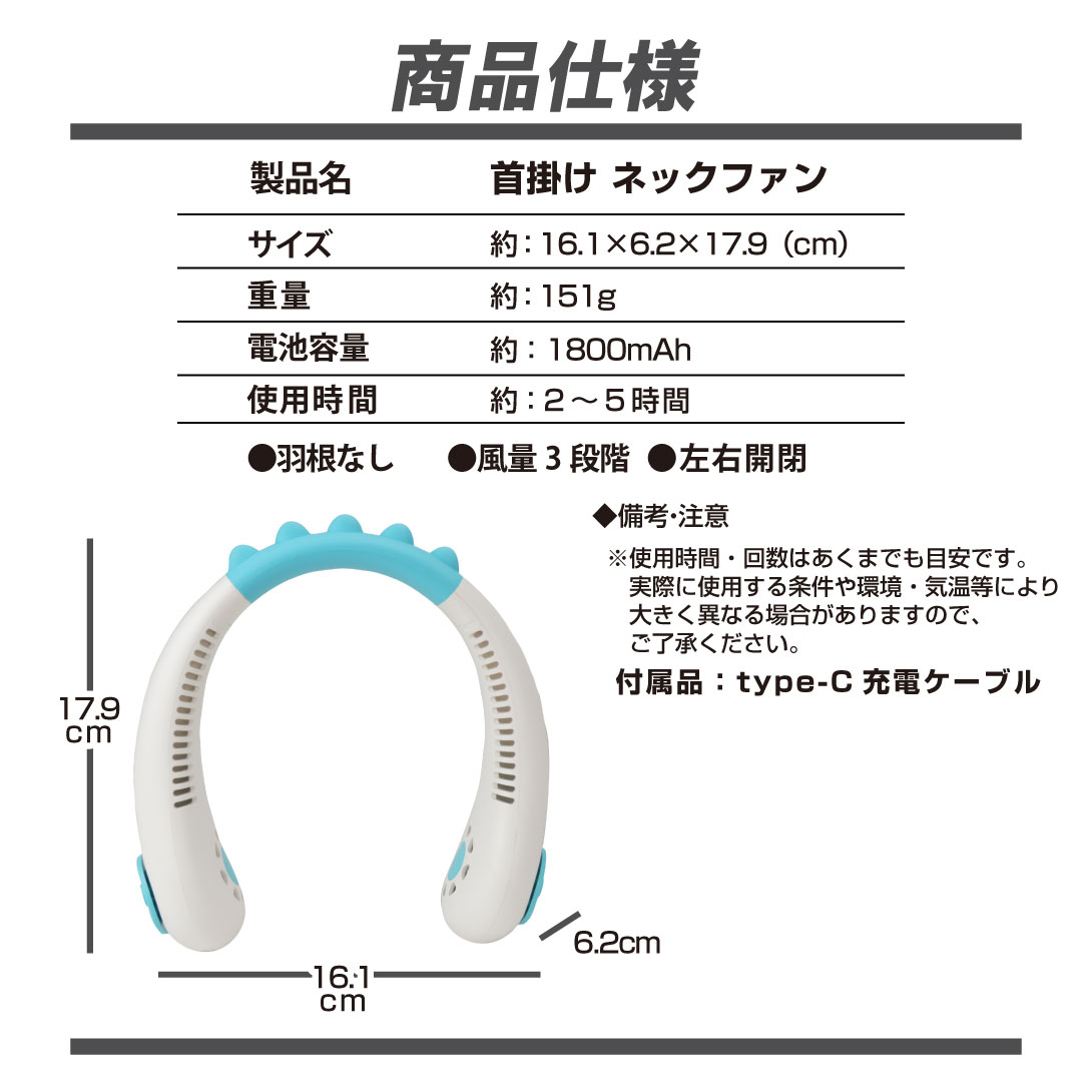 ネックファン 首掛け 充電式 熱中症対策 暑さ対策 風量3段階 静音 羽根なし 携帯 首掛け扇風機 1個