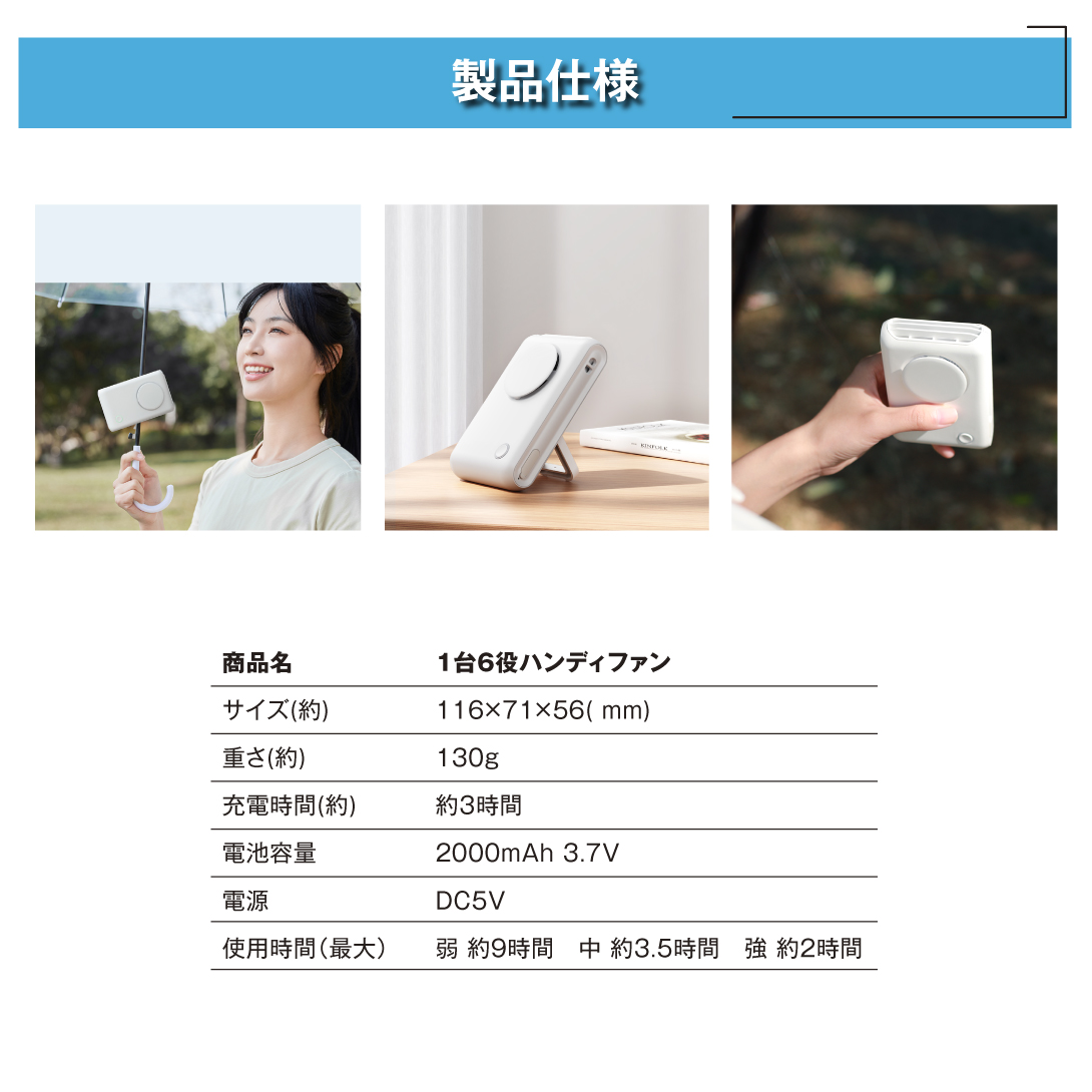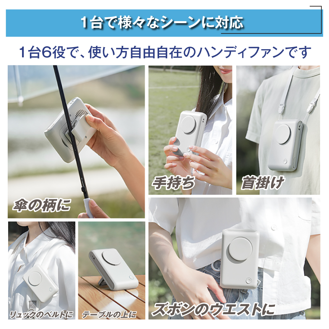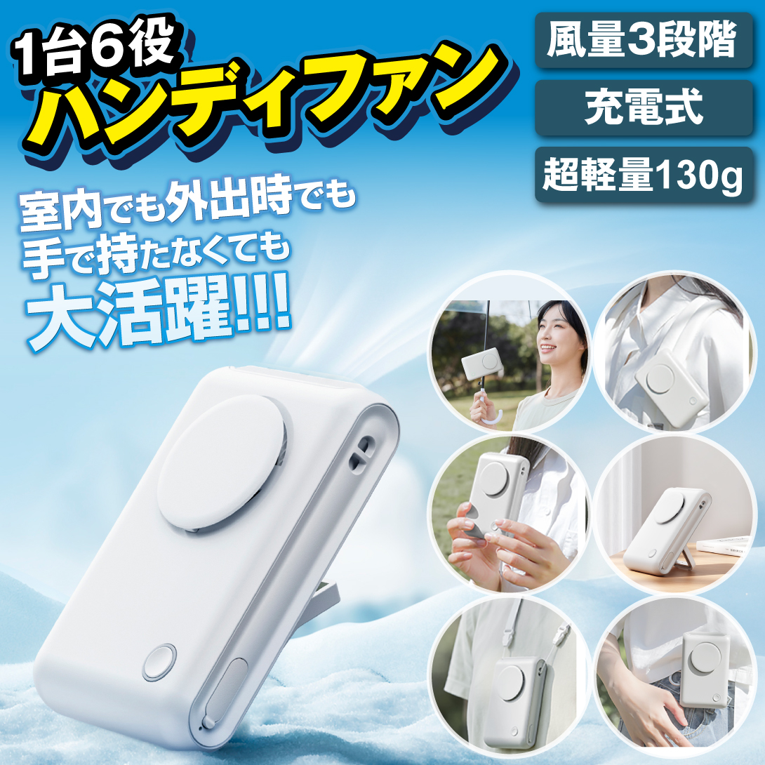 扇風機 1台6役 ハンディファン 3段階風量調整 静音 携帯扇風機 手持ち 小型 首掛け