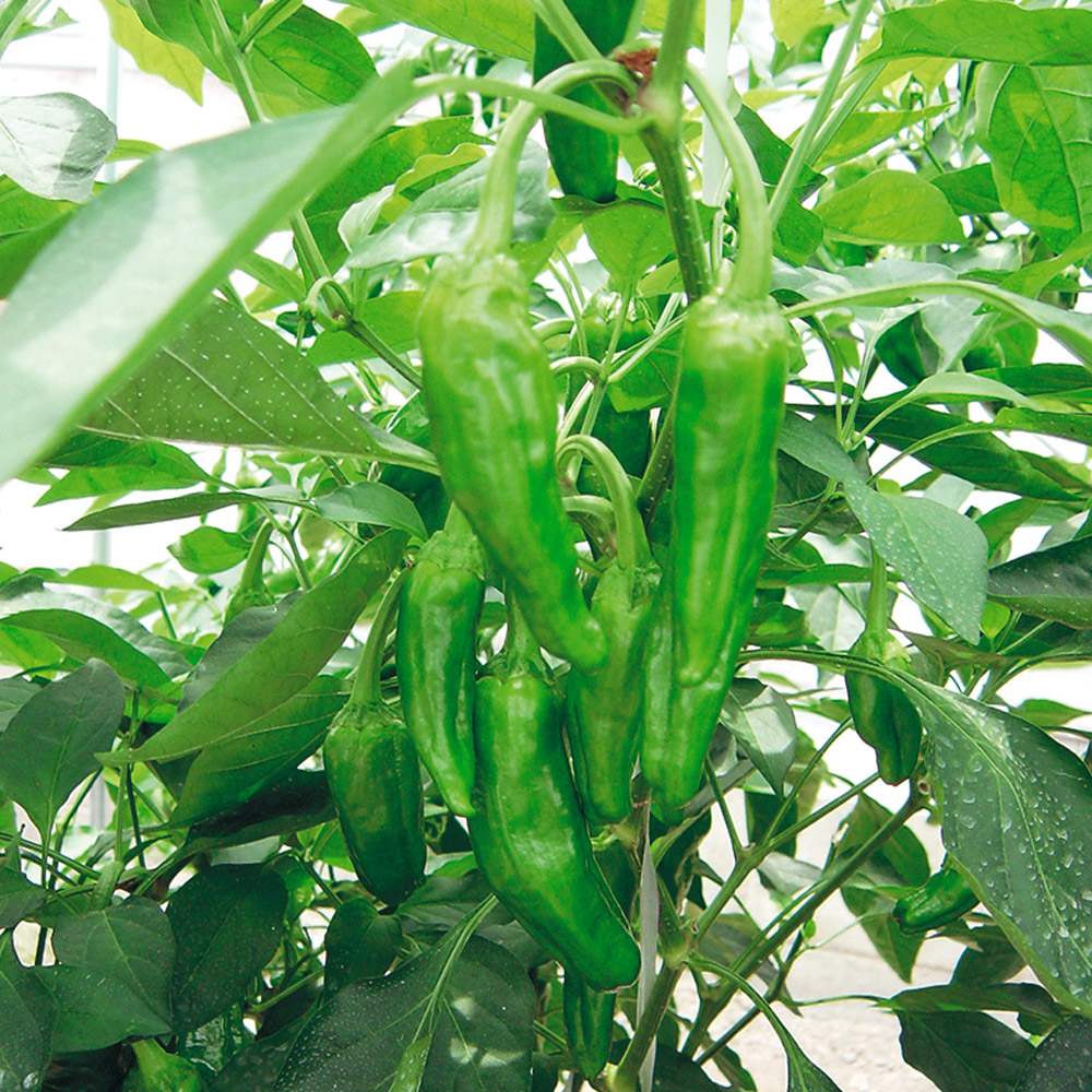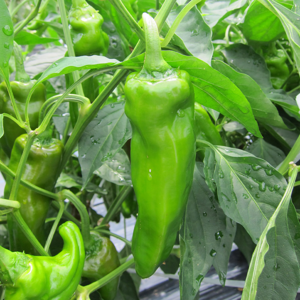 辛みの少ない大型甘唐辛子。種が少ないため、煮物・炒め物等、あらゆる料理で大活躍!