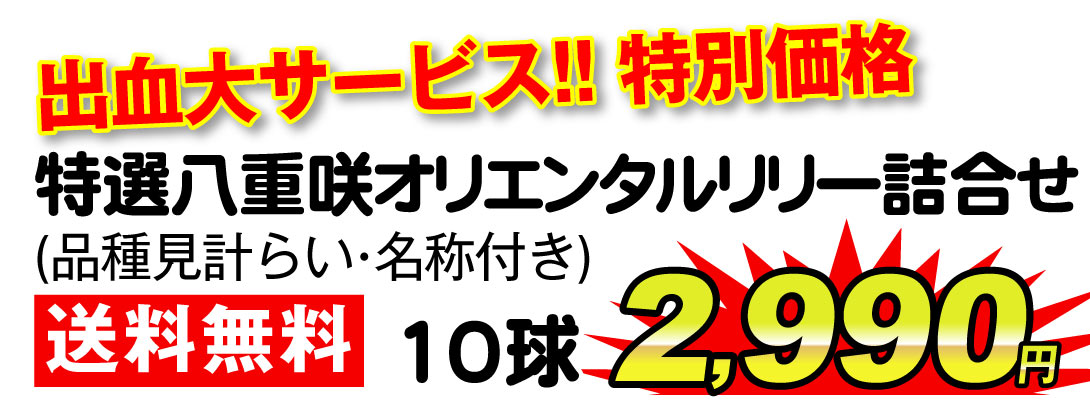 ユリ球根 ネット限定セール 特選八重咲オリエンタルリリー詰合せ(品種見計らい・名称付き) 10球 送料無料