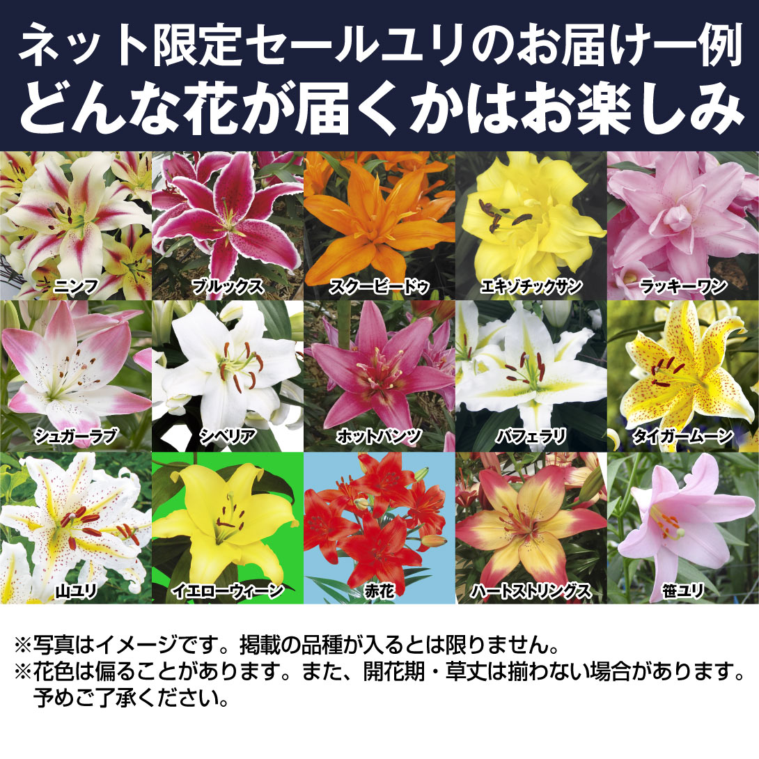 今季当社で販売していたユリの球根の中から完全おまかせでお届けします。
