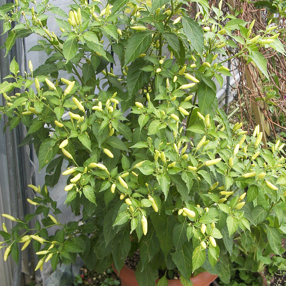 パスタなどの調味料として人気のタバスコソースの原料。淡緑→オレンジ→赤と果実の色が変化します。