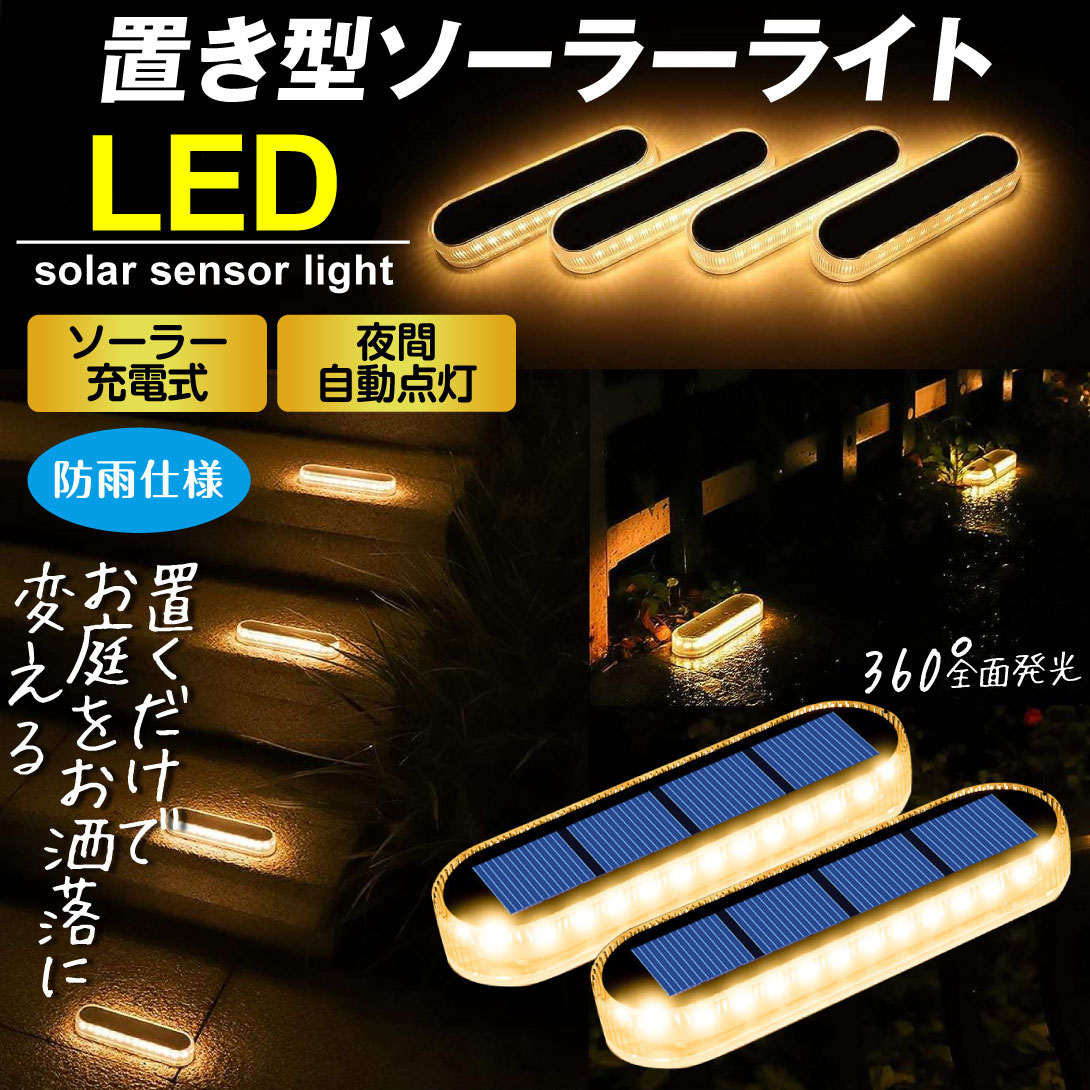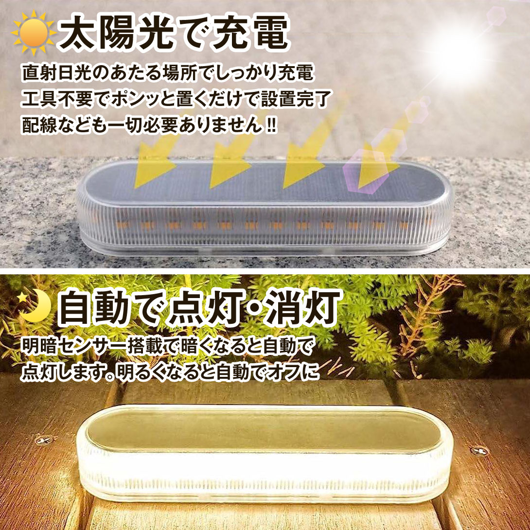 ソーラーライト 置き型 白色 暖色 LED 屋外 おしゃれ ガーデンライト 防雨 高耐久 ソーラー 配線不要 明暗センサー 駐車場 庭 地面 国華園