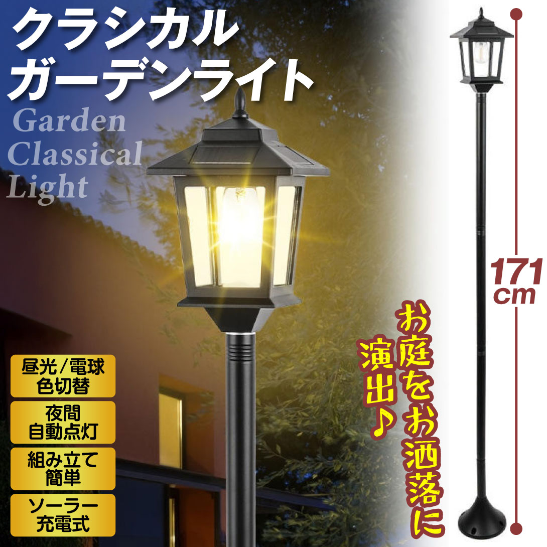 庭園灯 外灯 LED ソーラーライト ポールライト クラシカルガーデンライト 1個 ソーラー 電球色 昼白色 おしゃれ ポール 切替可 屋外 明暗センサー 防雨 国華園