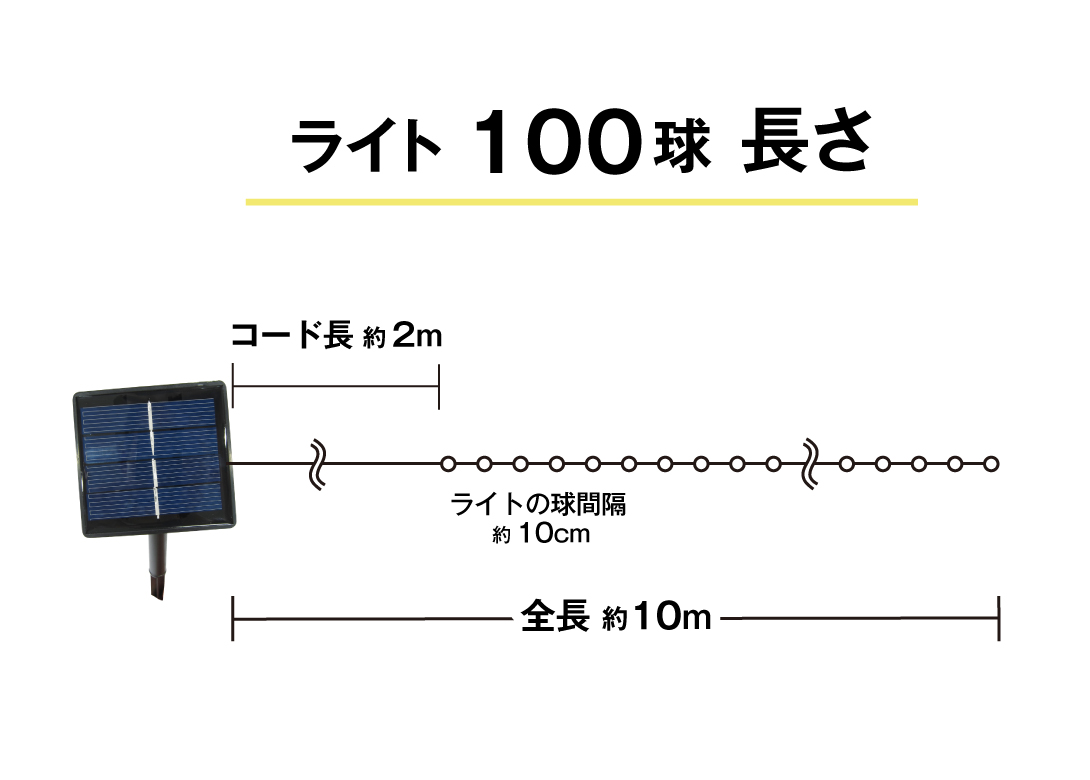 ライト100球(10cm間隔)/8パターン点滅/単3形充電池付/ON/OFF・パターン切替ボタン付(ON時自動点灯)/防雨仕様