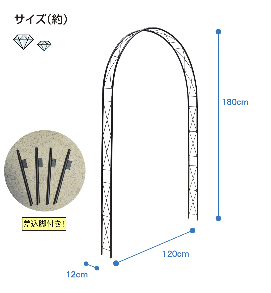 鉄製スマートアーチ ダイヤ 黒 1個 アーチ ガーデンアーチ ローズアーチ バラアーチ アイアン ガーデニング 庭 玄関 門 フラワー つるバラ 薔薇