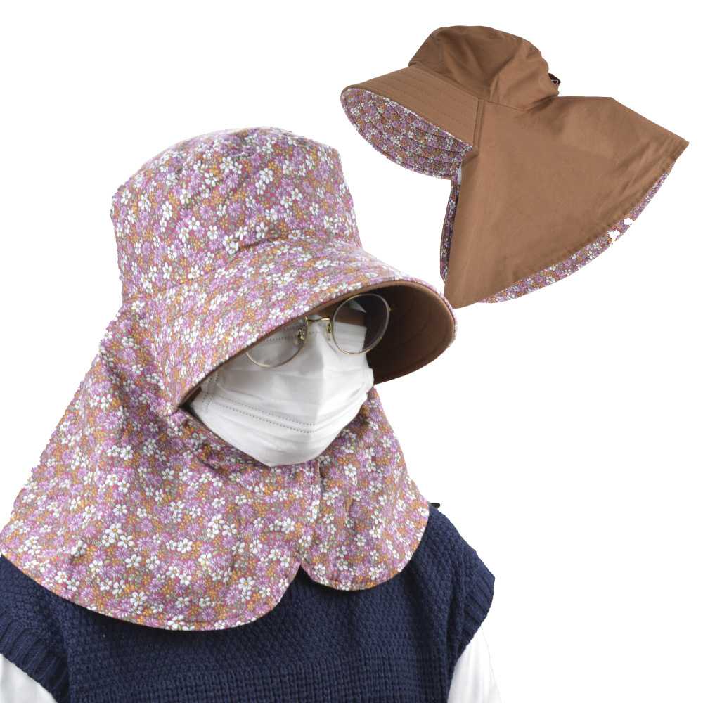 表はシンプルな無地で、裏は花柄のリバーシブルになっていて、1つのハットで2つのデザインを楽しむことができます。