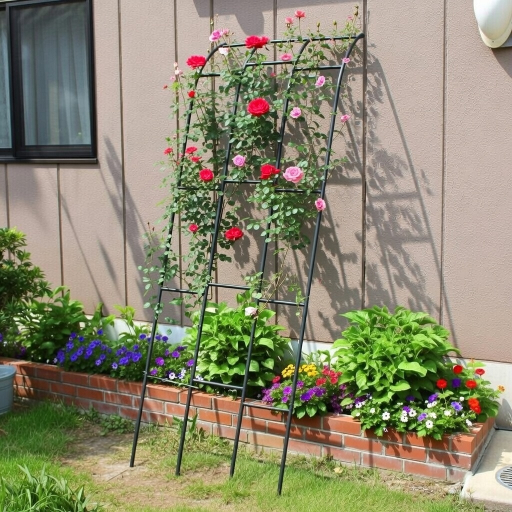 壁や窓辺に立てかけて、バラの誘引が楽しめます。