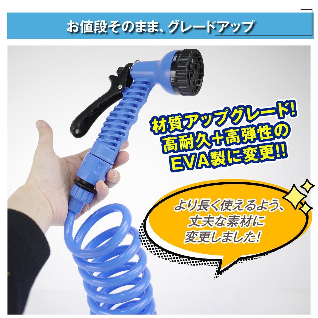 スパイラルホース 1個 噴射7パターン 巻き取り不要 選べる長さ 散水ホース 伸びるホース 園芸ホース 洗車