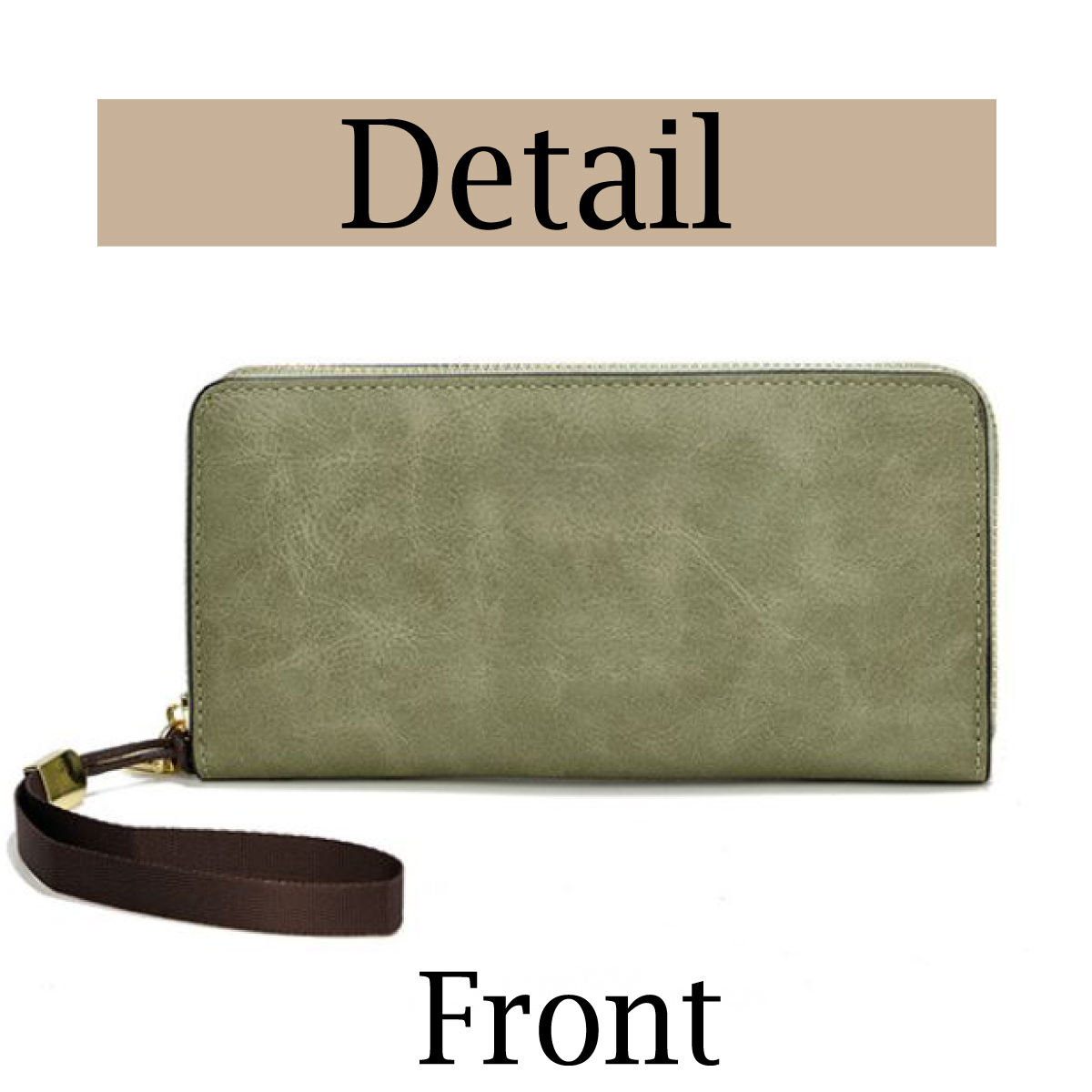 ロングウォレット グリーン 長財布 財布 大容量 スマホも入る ストラップ レザー調 くすみカラー ラウンドファスナー 女性 人気 おしゃれ 多機能 お札が曲がらない