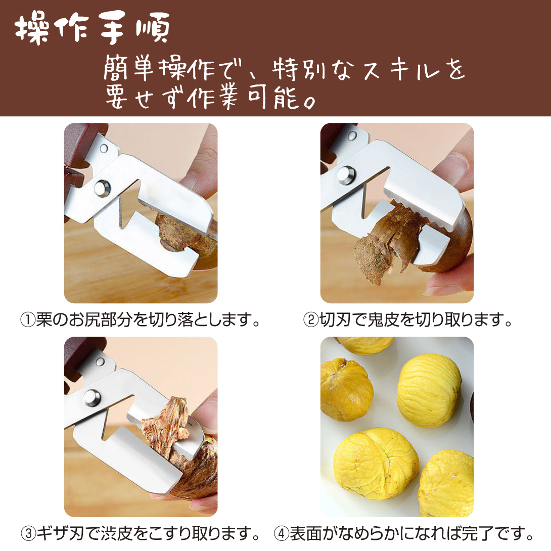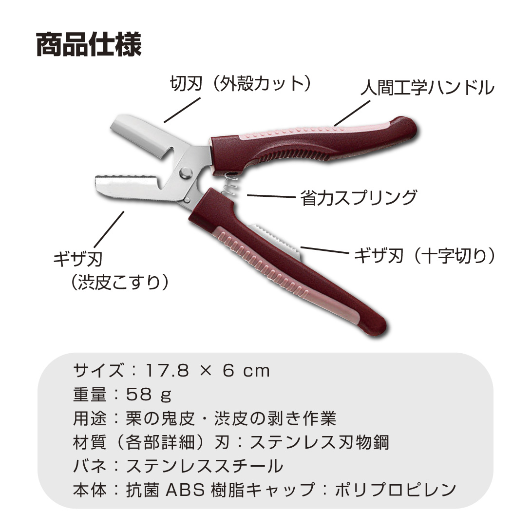 栗の鬼皮・渋皮むきが簡単にできる、栗専用の皮むきハサミです。