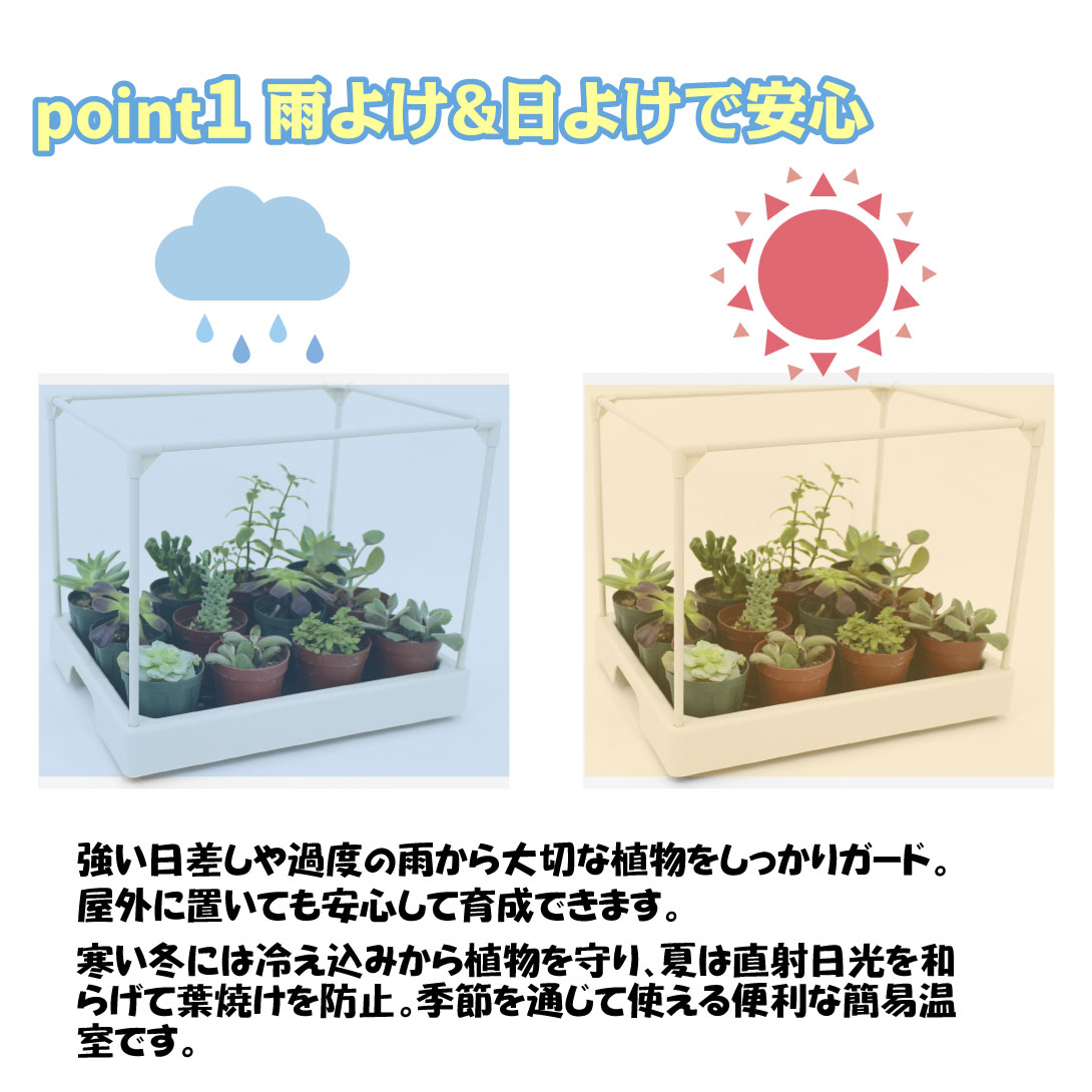 多肉植物やサボテンを日差しや雨から守る簡易温室。
