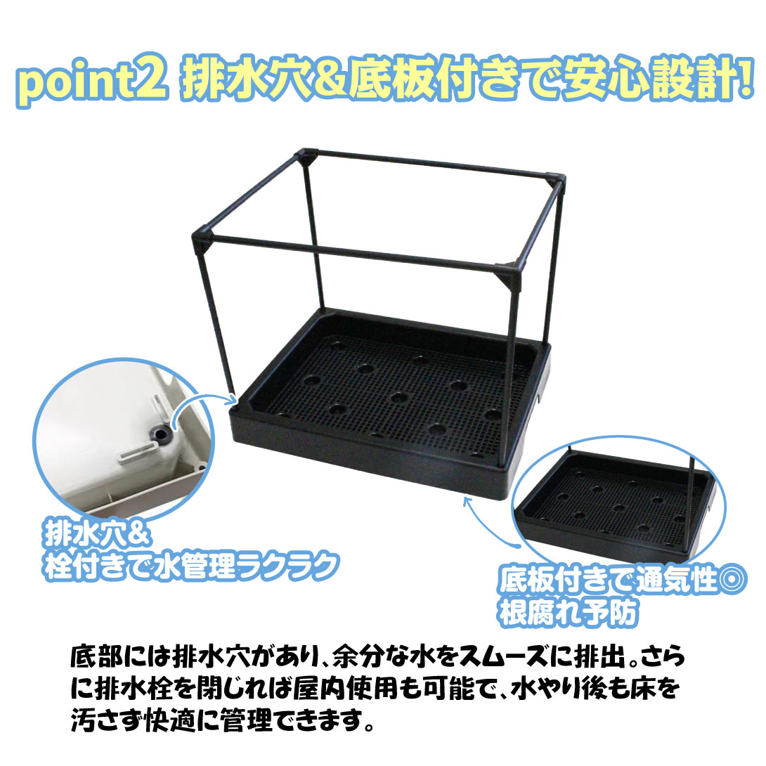 底板&排水穴付きで根腐れ防止、最大3段まで積み重ねOK。