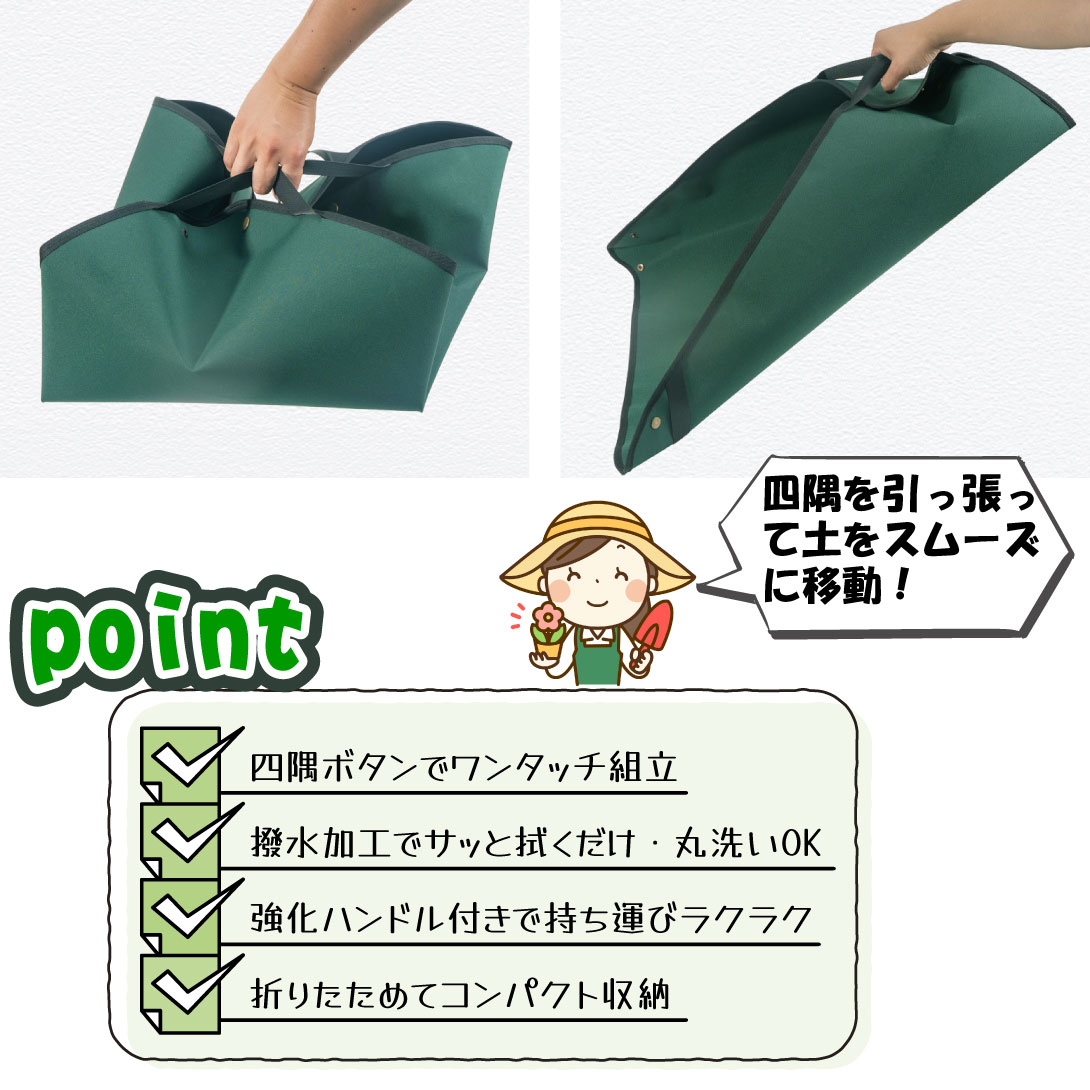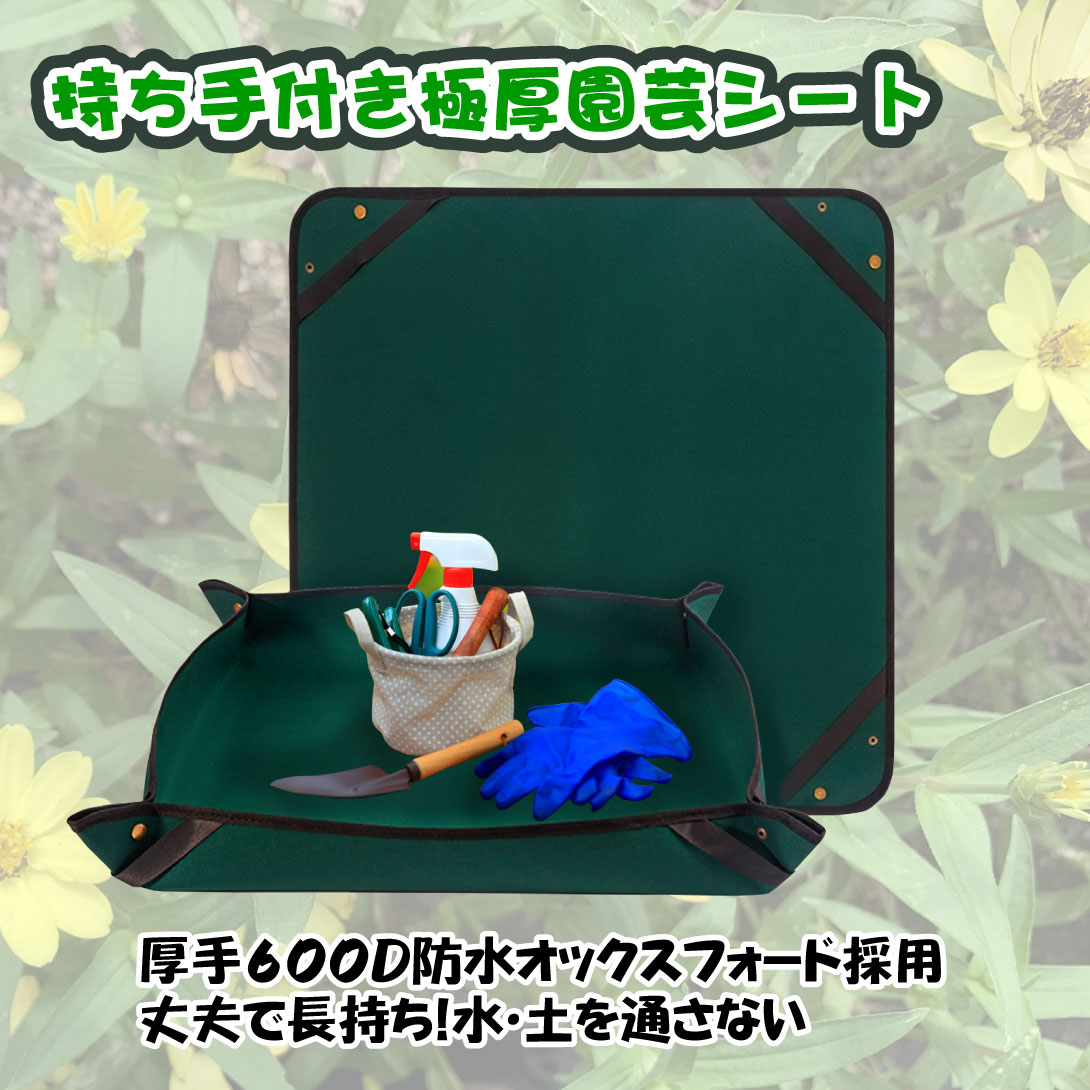持ち手付極厚園芸シート1個 ガーデニングシート 防水 丈夫 600D 持ち手付き 折りたたみ 75cm 100cm 極厚 植え替え 寄せ植え 多肉植物 家庭菜園 収穫 作業用