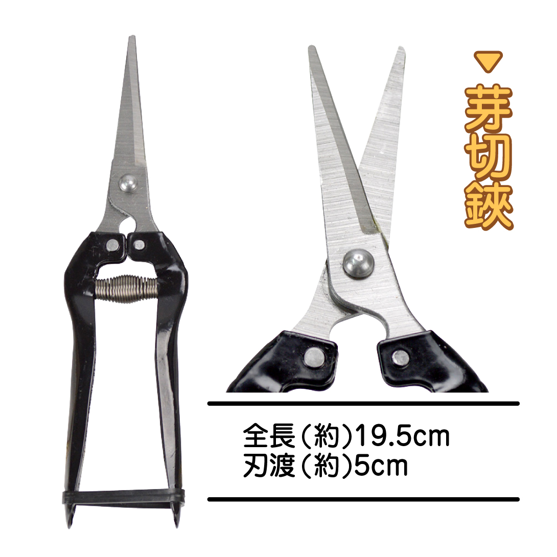 【芽切鋏】約:長さ19.5cm、刃渡5cm、炭素鋼・プラスチック製