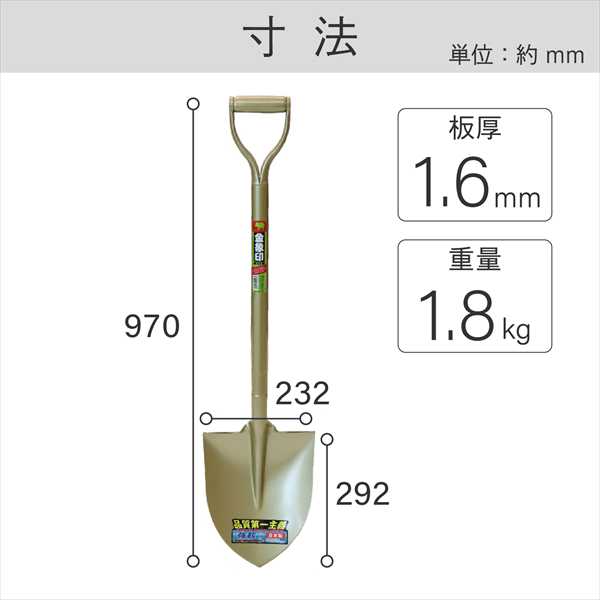 土木、造園、家庭園芸など幅広く使用いただけます。頭部はショベル鋼板S50C相当を使用し、焼入れ(強度が上がる、摩耗に強くなる)、焼戻し(弾性力が上がる)の熱処理を行っています。パイプ柄の持ち手部分を筋付け形状にし、すべり止め機能とフィット感を持たせました。握り部は握りやすいタイコ型グリップを採用。