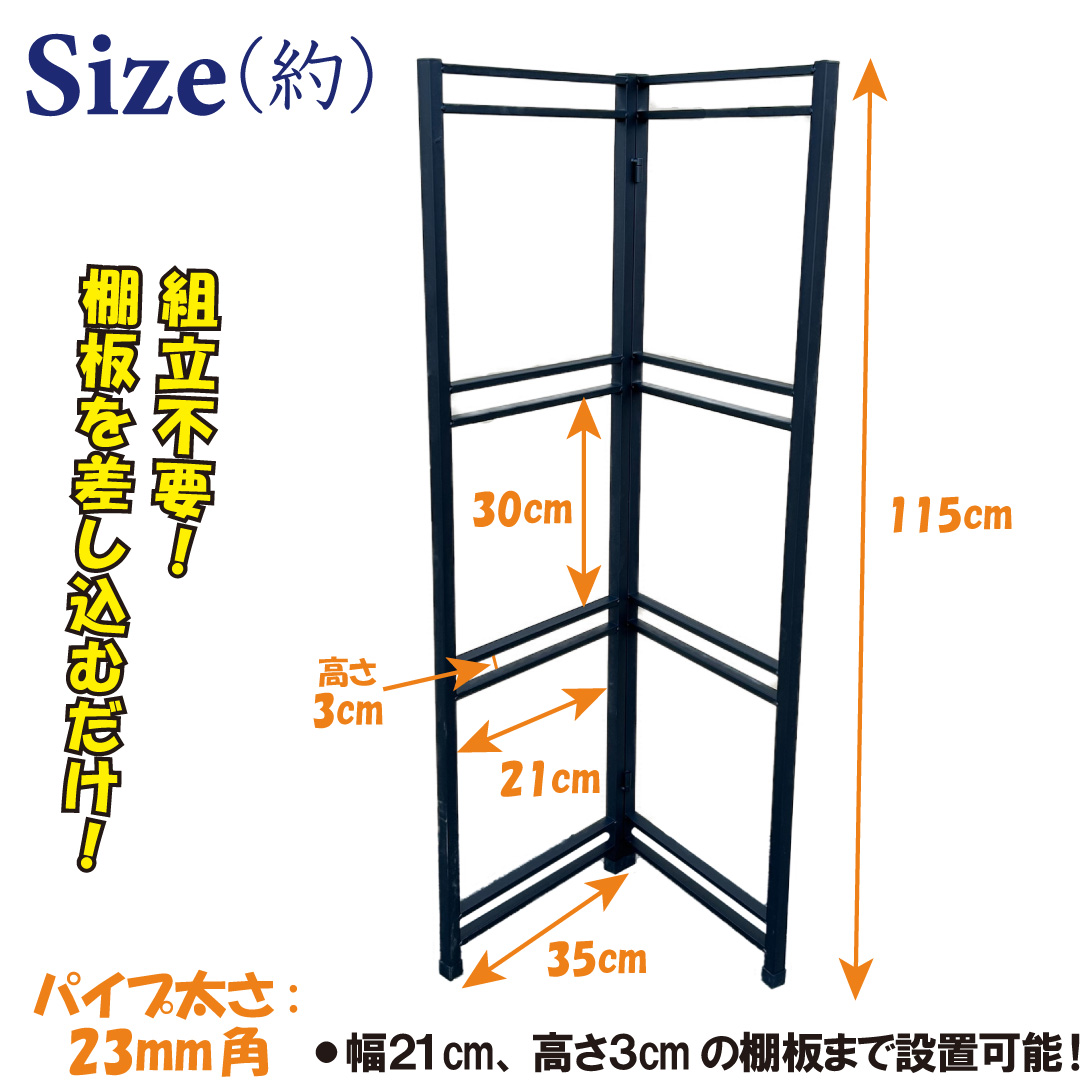 ● サイズ (約) : 幅35×高さ115(cm)、パイプ 23mm角、棚板間隔 30cm