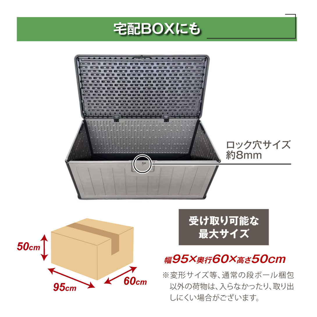 大容量で、ガーデニング用品の収納や宅配ボックス、ゴミストッカーとしてお使いいただけます。