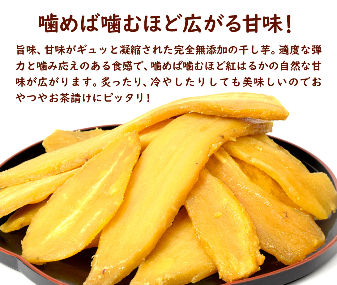 蜜芋とも呼ばれる甘さが人気の「紅はるか」を、余計なものは加えず薄くスライスして干し上げた、完全無添加の天然スイーツ。干すことで甘味&栄養がギュギュっと凝縮!噛むほどに自然な甘味が広がり、ついついまた手が伸びてしまう美味しさ。