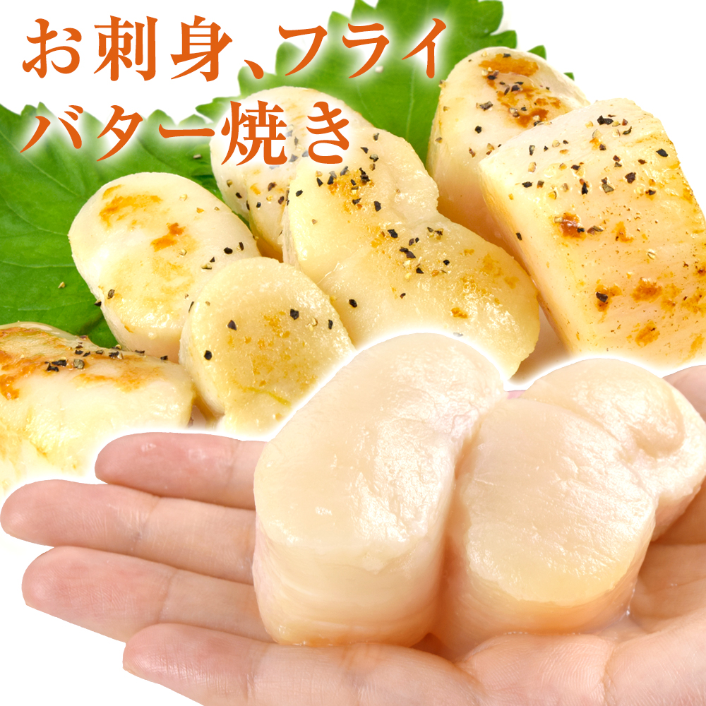 ●商品情報:刺身ok!鮮度抜群!ほたてよりも弾力がありプリプリ食感。貝の旨みと歯ごたえが絶妙です。薄く切ってお刺身や、塩焼きやバター焼き、天ぷらやパスタなどにもオススメです。
