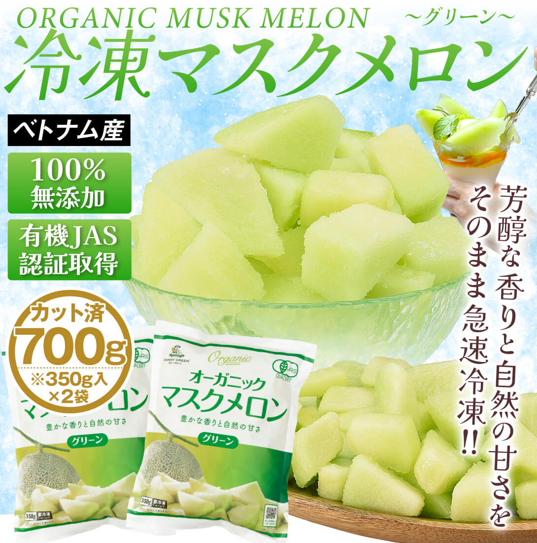 冷凍マスクメロン グリーン 700g(350g×2袋) 有機 JAS オーガニック 青肉 ベトナム産