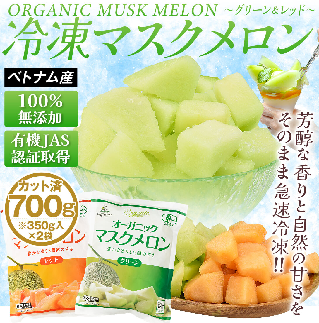 冷凍マスクメロン グリーン・レッドset 700g(各350g) 有機 JAS オーガニック 青肉 赤肉 ベトナム産