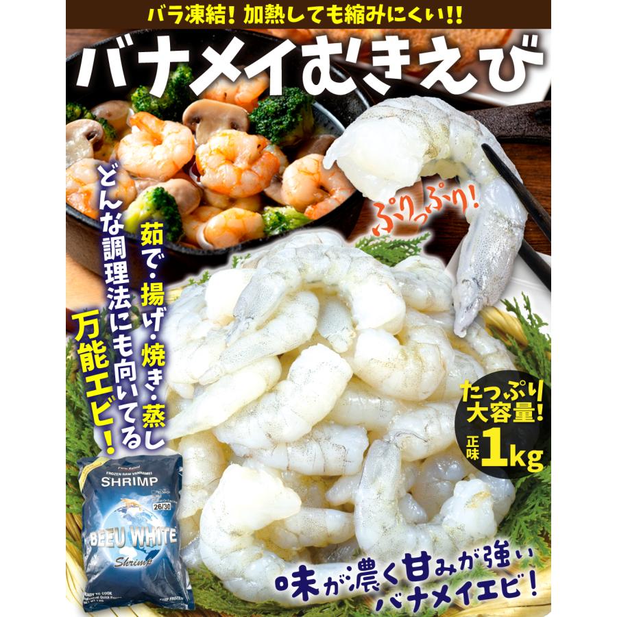 むきえび 徳用 バナメイむき海老 1kg 生冷 バラ凍結 送料無料 冷凍便 食品