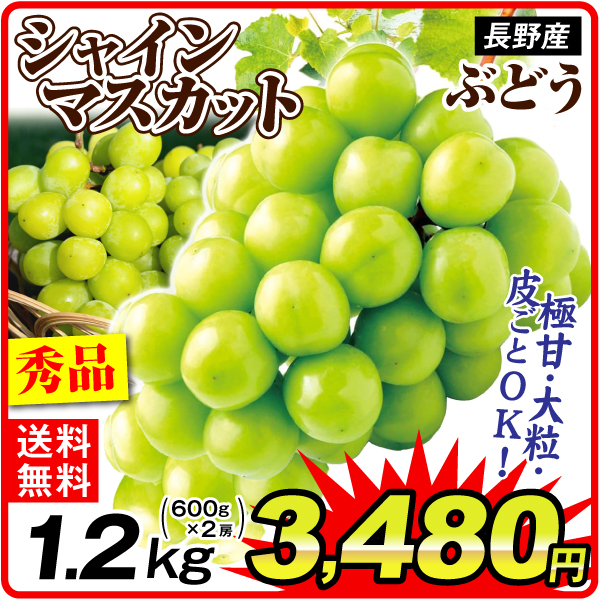 ぶどう 2房 シャインマスカット 長野産 1.2kg ご家庭用 産地直送 葡萄 ブドウ フルーツ くだもの 食品 国華園