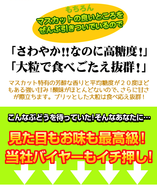 「甘い・大きい・種なし」に加え、皮ごと食べられる理想のマスカットを大特価でお届け!