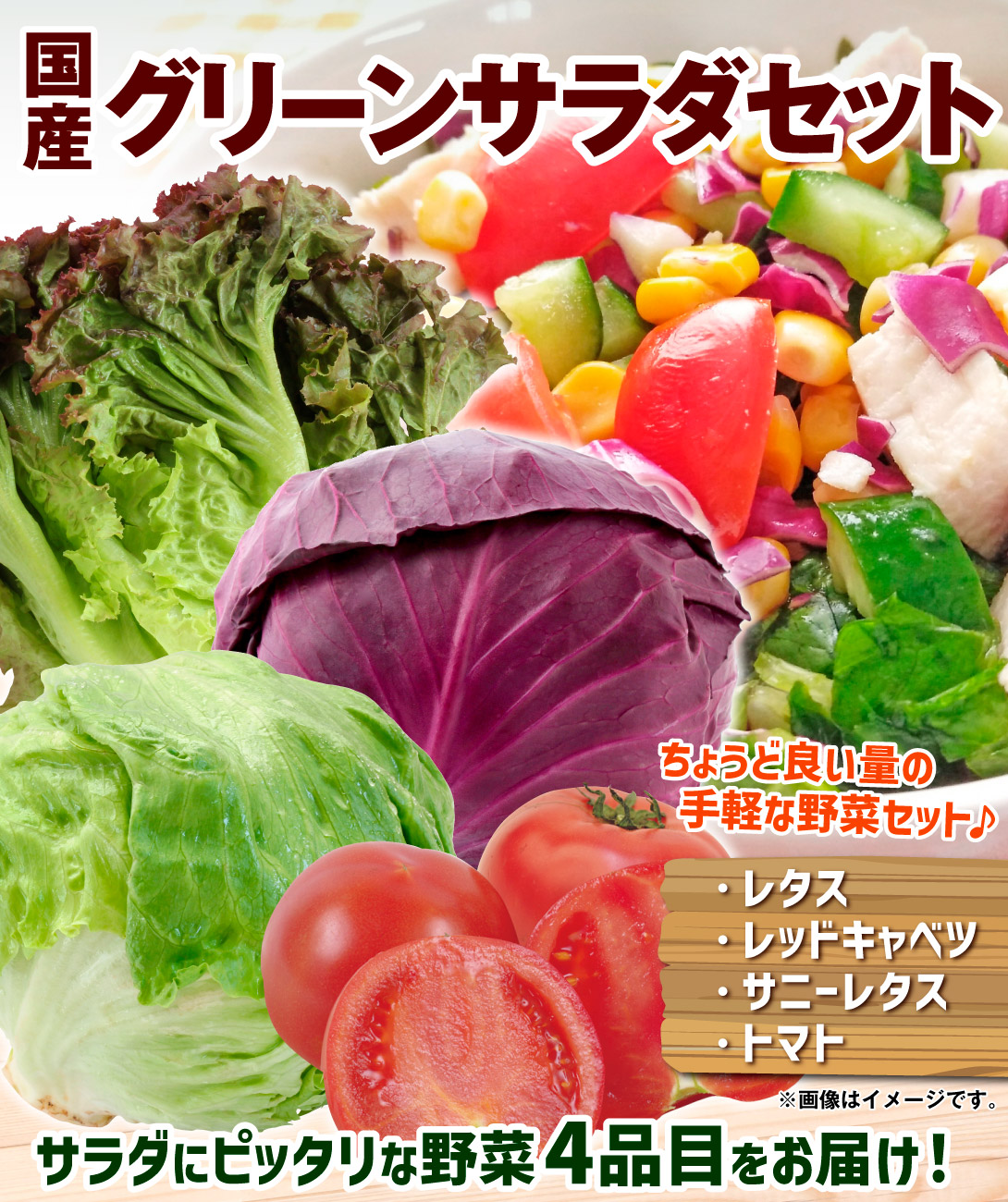 野菜セット グリーンサラダセット 4品目 1箱 国産 レタス レッドキャベツ サニーレタス トマト 詰め合わせ 送料無料 食品