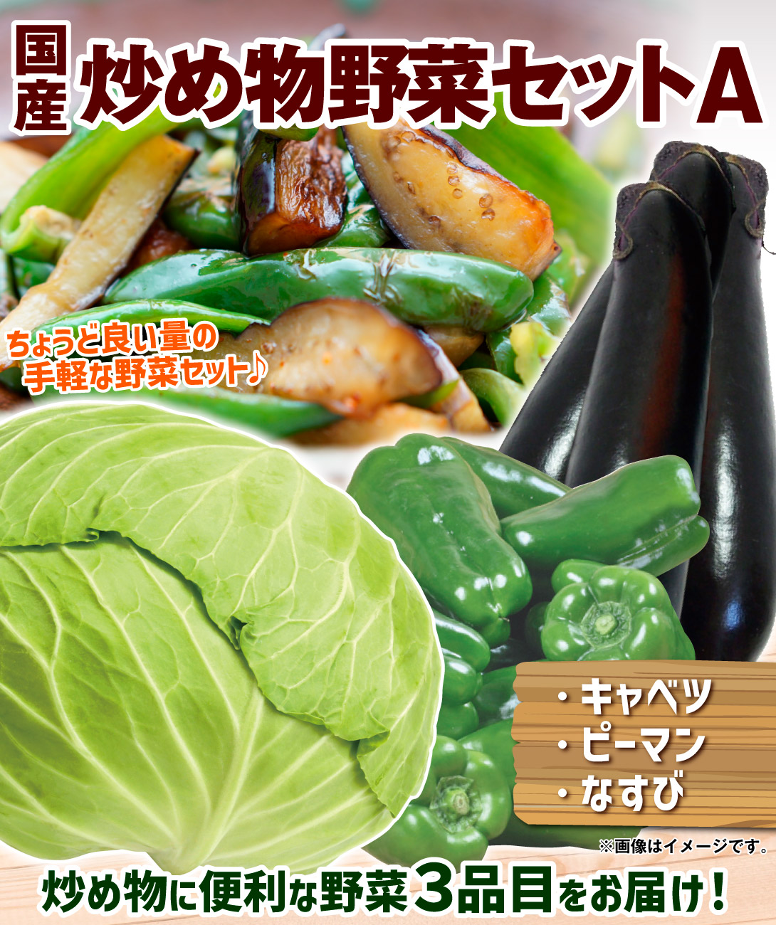 野菜セット 炒め物野菜セットA 3品目 1箱 国産 キャベツ ピーマン なすび 詰め合わせ 送料無料 食品