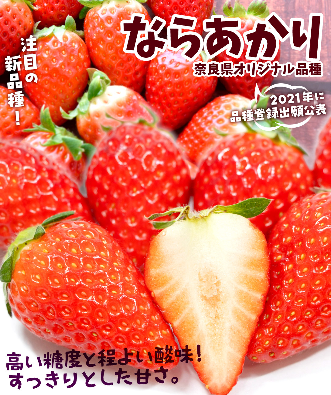 ●商品情報:「ならあかり」は2021年に品種登録出願公表された、奈良県生まれの注目の新品種!