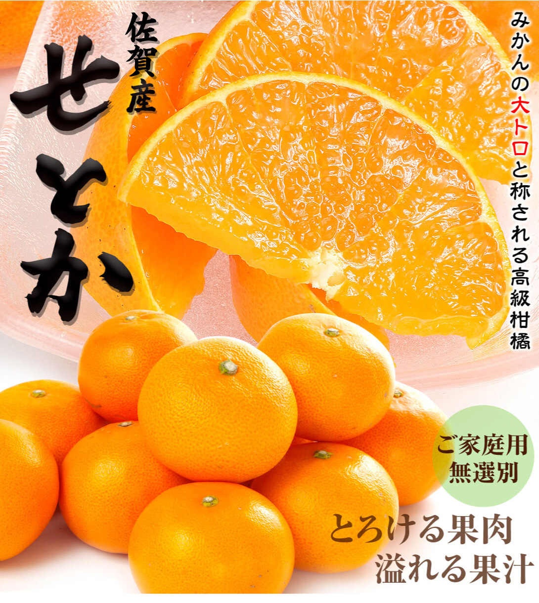 ●商品情報:果皮が薄く、果汁や果肉がゼリーのようにとろけだす!その贅沢な味わいから別名“みかんの大トロ”と称されるプレミアム柑橘「せとか」。芳醇な甘味は数ある柑橘の中でも極上!愛媛、和歌山に次ぐ名産地・佐賀県の、すばらしい甘味と食感、香りにあふれる高級柑橘をお求めやすい価格でお届け!