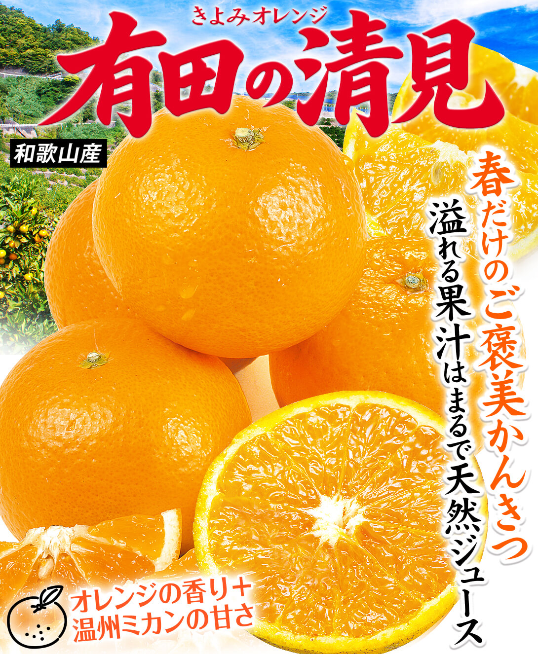 ●商品情報:果肉は種が少なく柔らかい!甘味・酸味のバランスが絶妙で、温州みかんの味とオレンジの香りの良い所取り柑橘!