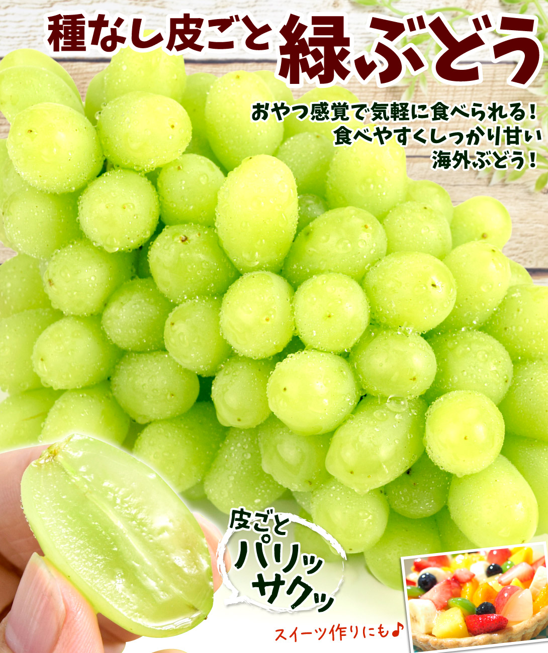 ●商品情報:おやつ感覚で気軽に食べやすい!皮ごとパリッと弾ける海外緑ぶどう!