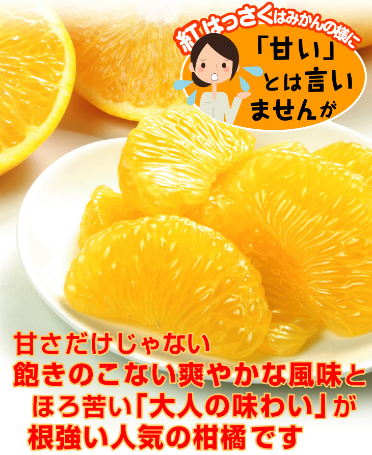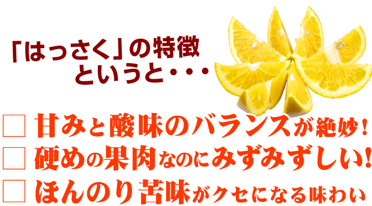 ●商品情報:人気の春柑橘・はっさくの枝替わり品種。独特の苦味や刺激が控えめで、甘味が強くジューシー!
