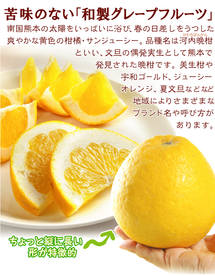 ●商品情報:肥後の国・熊本のプリプリ&みずみずしくジューシーな“和製グレープフルーツ”河内晩柑!見た目に反して苦味少なく、優しい甘さで大人気!