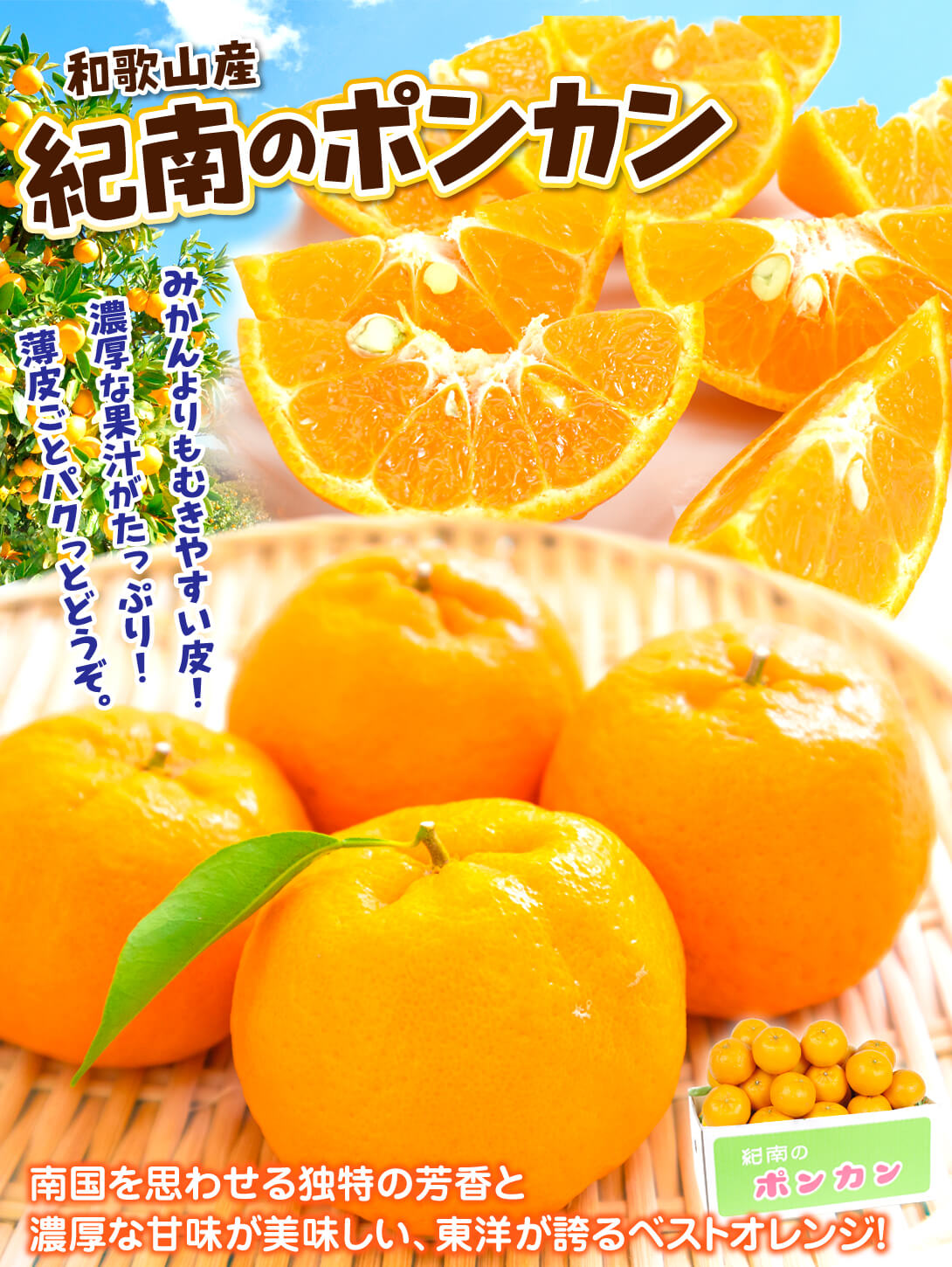 ●商品情報:みかんよりもむきやすい皮と、甘味が強いコクのある味わい!南国を思わせる独特の芳香が最大の特徴の、東洋が誇るベストオレンジ。